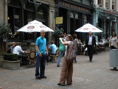 朝ごはんを食べてから、10時過ぎにシティに出ると、お、いきなりぱらぱらと雨が降り始めた。薄い雲と、遠くに青い空は見えるのだが、頭上には黒い雲が乗っかっている。