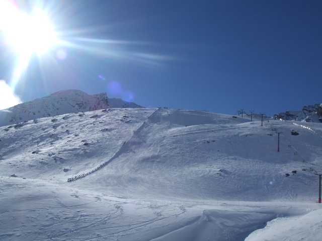 雪の状態を見ていただければ分かると思うが、悪くない。北半球の夏にスキーが出来る事を考えれば、こりゃもう贅沢だ。リフト代が日本よりバカ高くても、バス代が高くても、いいですよ、その分しっかり働くもんね、そんな気持ちにさせてくれるクイーンズタウンだ。